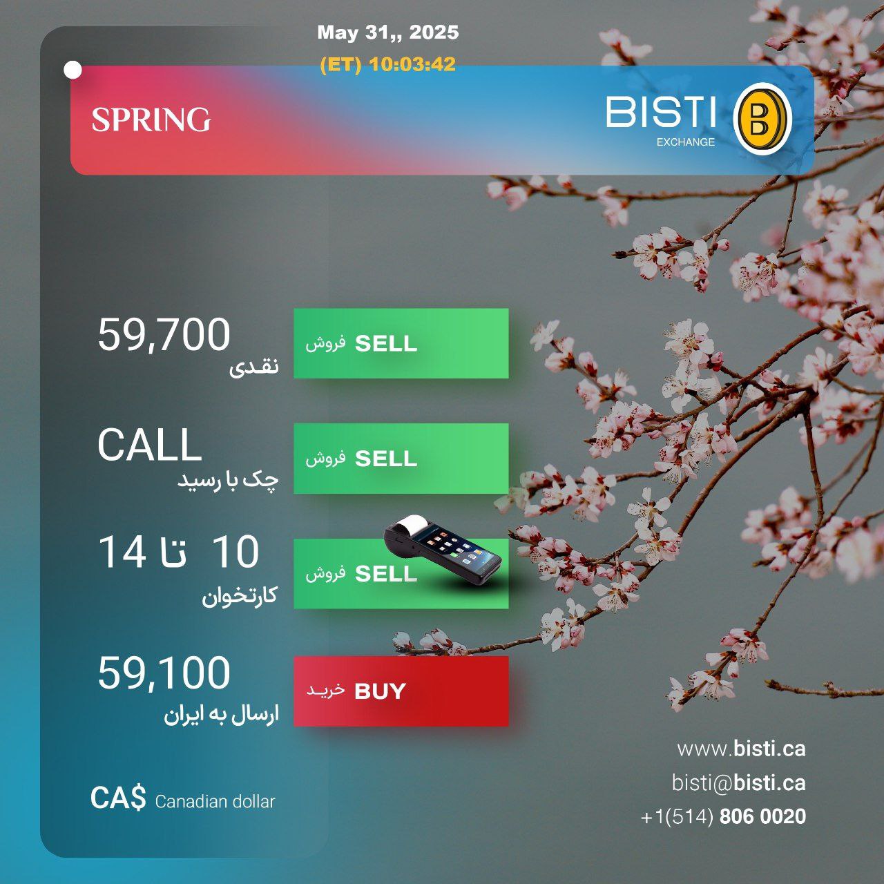 نرخ برابری دلار کانادا و تومان نیز با نوسان افزایشی روبهرو شده بهطوریکه، امروز قیمت دلار کانادا با ۴۴۰ تومانی نسبت به روز گذشته با قیمت ۷۷ هزار و ۲۵۰ تومان مبادله شد.