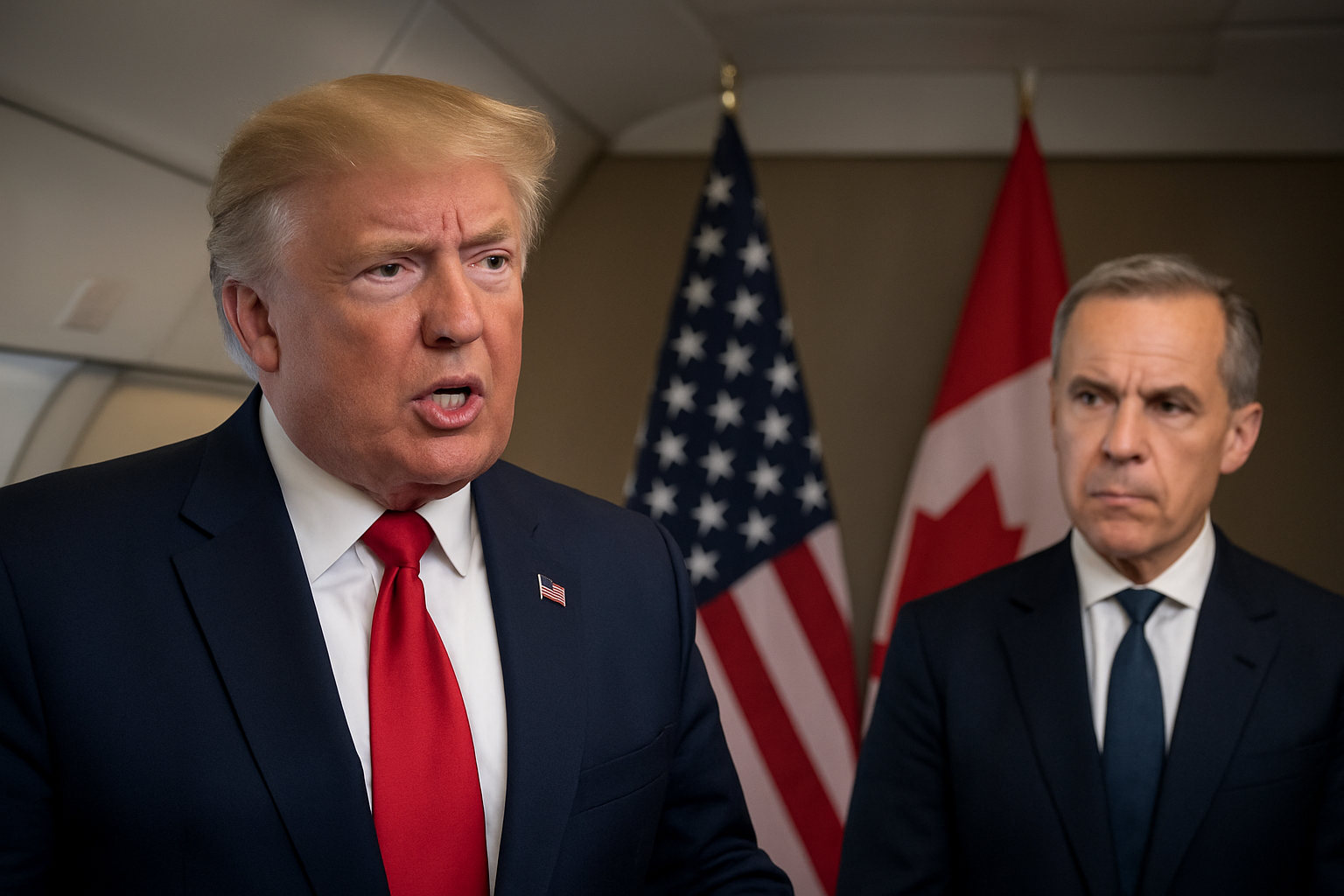 ترامپ روز جمعه در گفتوگو با خبرنگاران در هواپیمای نیروی هوایی آمریکا هنگام بازگشت به کشورش، در پاسخ به پرسشی دربارهی ازسرگیری مذاکرات با کانادا، آن را رد کرد. با این حال وی از نخستوزیر کارنی تمجید کرد و گفت که رابطهی بسیار خوبی با او دارد اما همچنان از آن تبلیغ انتقاد کرد.