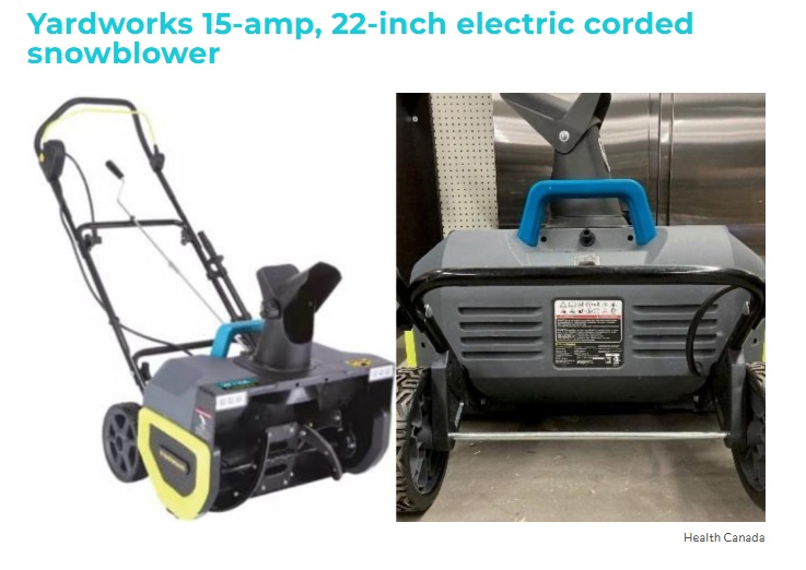 در ۱۱ مارس، برف‌روب برقی Yardworks با توان ۱۵ آمپر و عرض ۲۲ اینچ، مدل 060-0583، به‌دلیل مشکل کابل برق فراخوان شد.