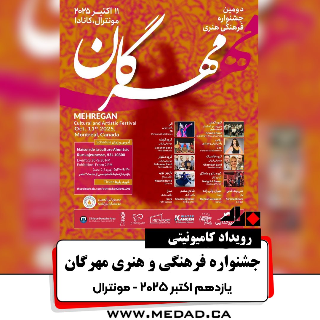 دومین جشنواره‌ی فرهنگی و هنری مهرگان      یازده اکتبر ۲۰۲۵ - مونترال