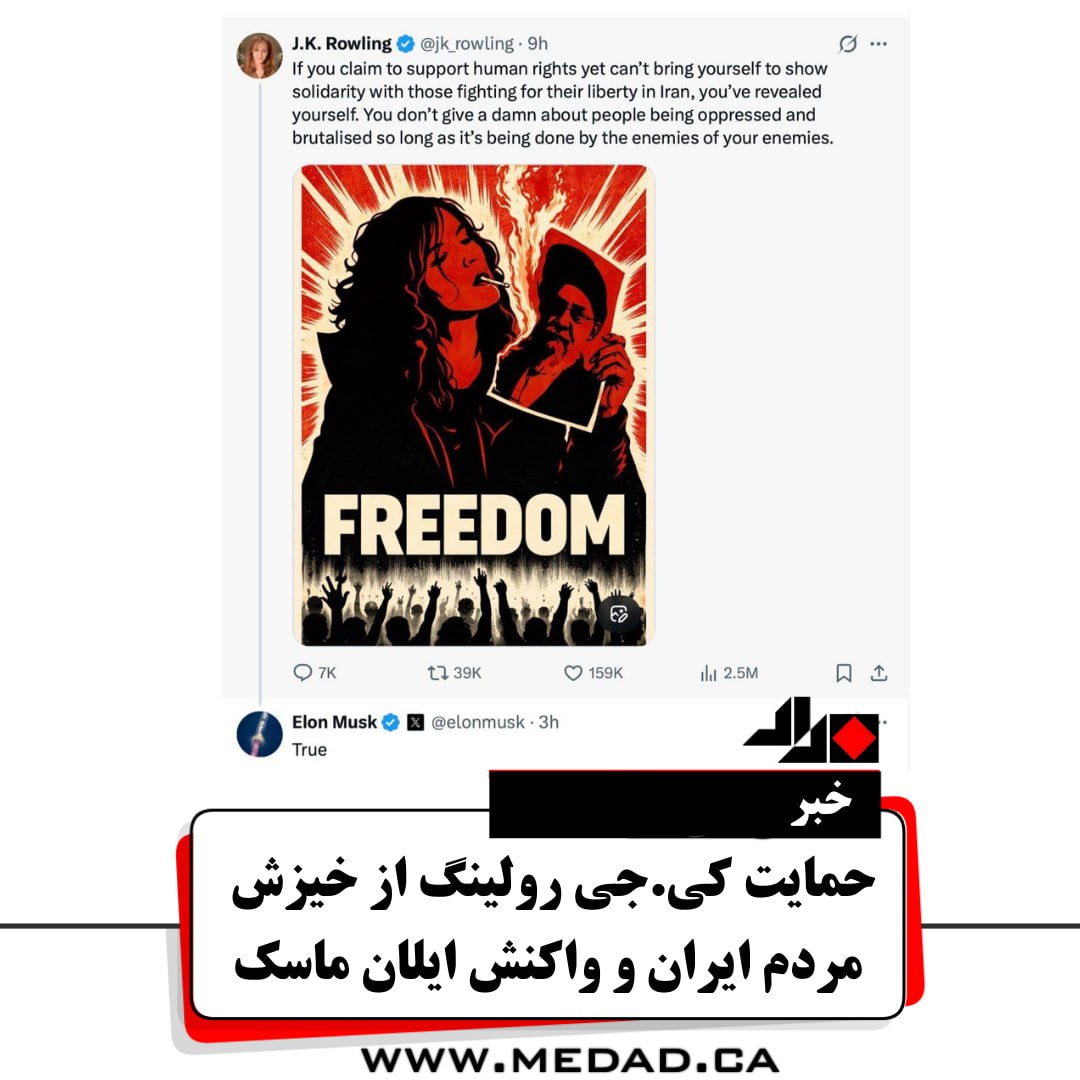 حمایت جی.کی رولینگ از خیزش مردم ایران و واکنش ایلان ماسک